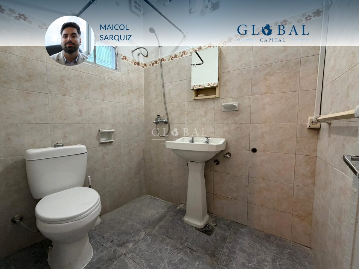 Cuenta con baño completo y un dormitorio, ubicado hacia el frente de la unidad.