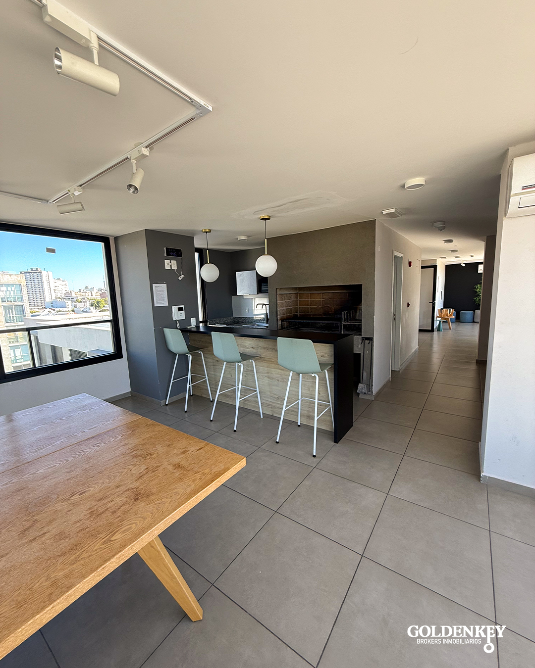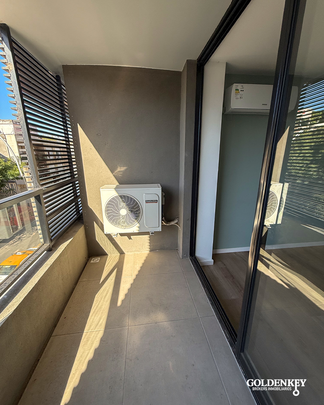 Living comedor amplio y luminoso con salida a amplia terraza al contra frente y aire acondicionado. Salida por amplia puerta ventana en aluminio.