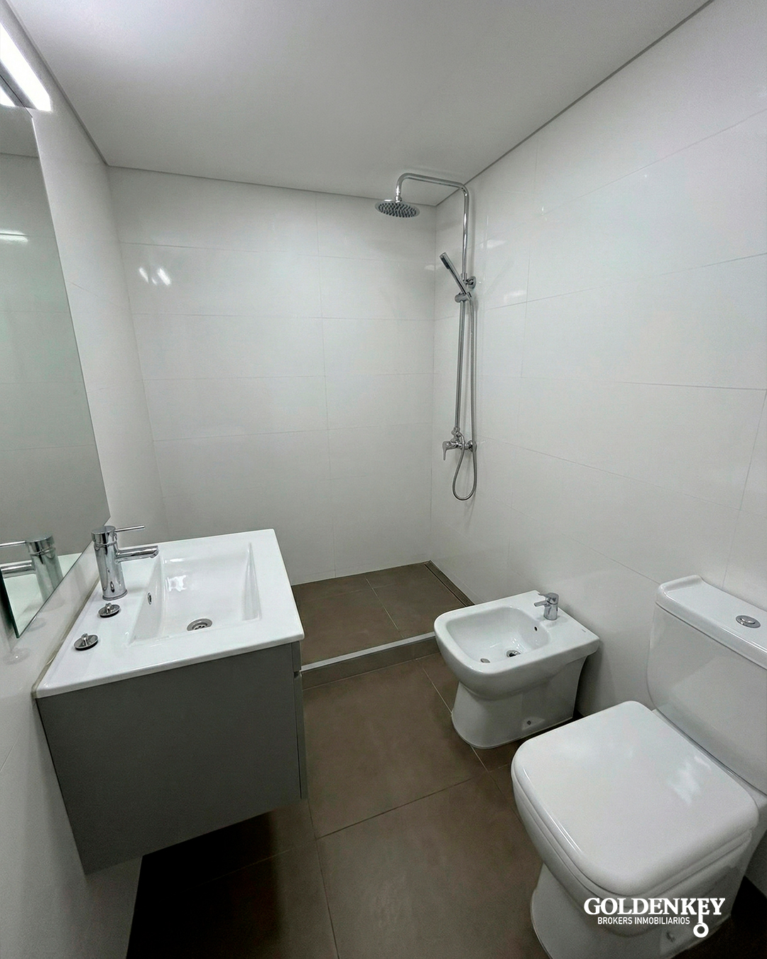 Baño amplio completo con conexión para lavarropa.