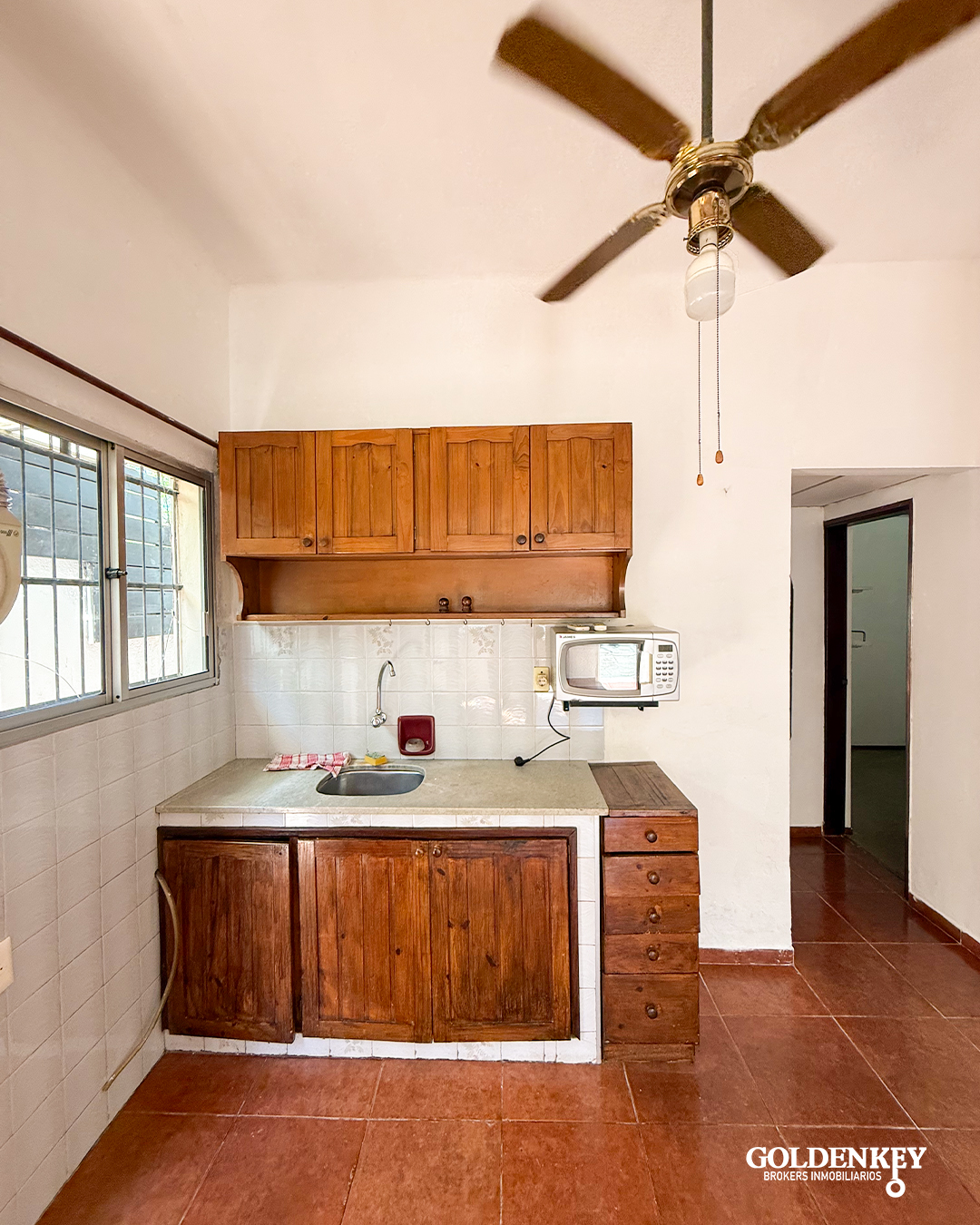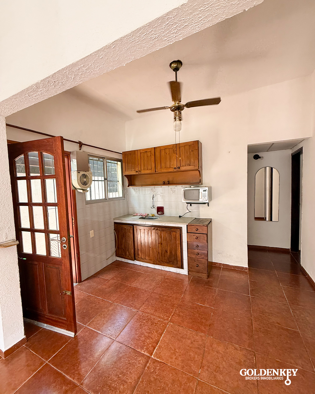 Salida desde la cocina a pasillo al fondo y acceso a patio con parrillero (compartidos con apartamento del fondo).