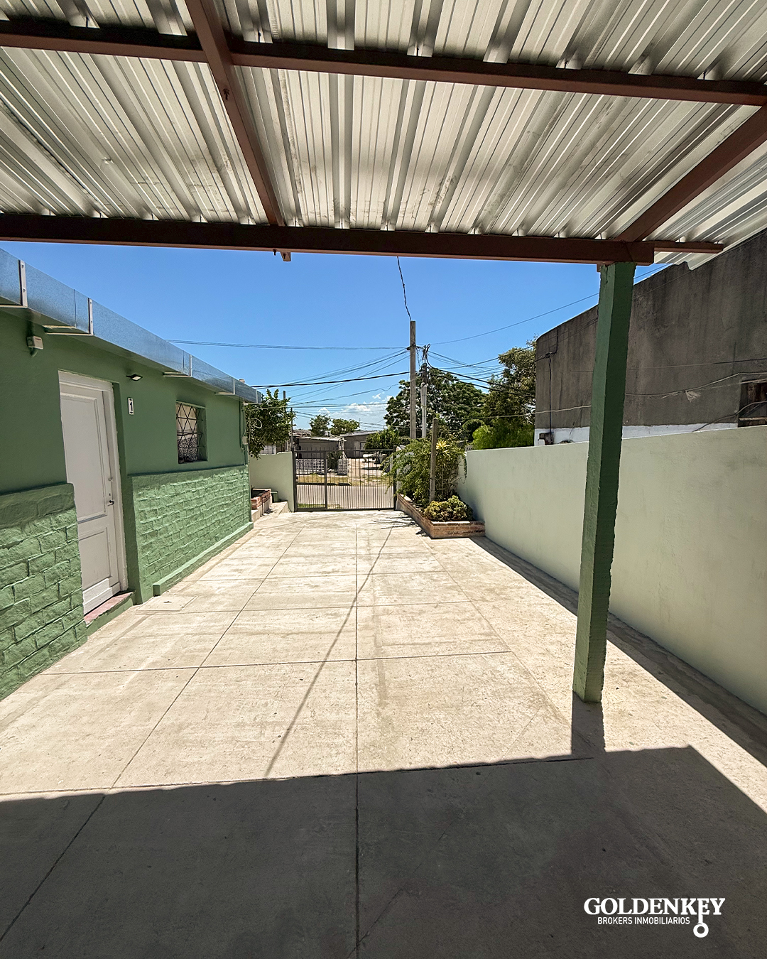 GARAJE para 2 autos en patio al frente (está la posibilidad de poner un tejido para separar por mascotas).
