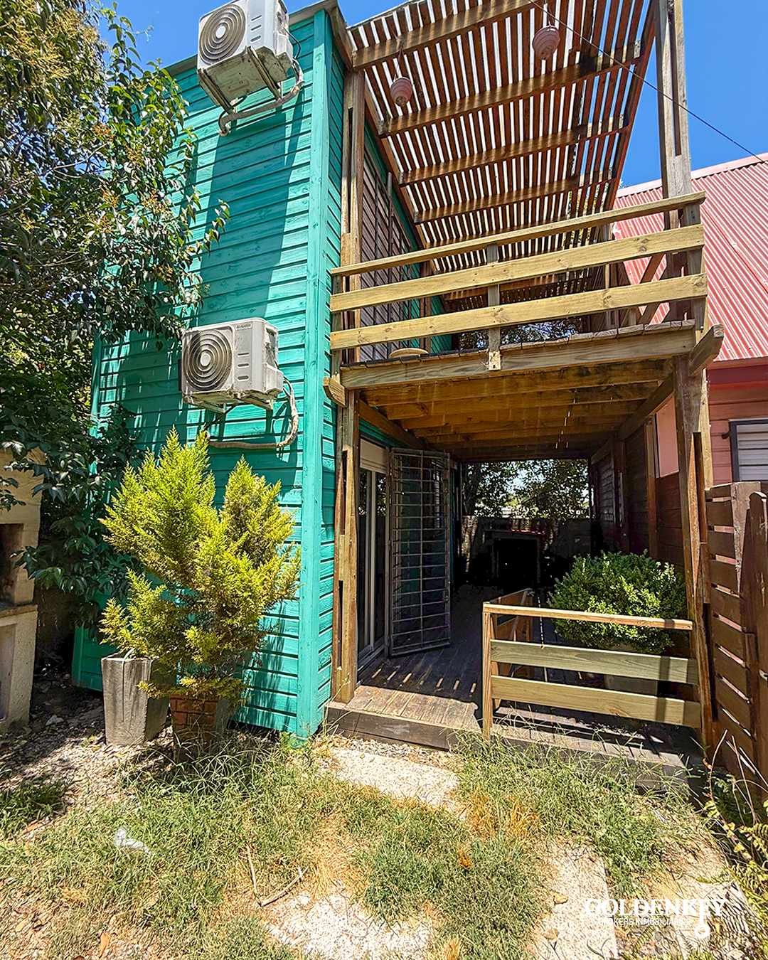 Acceso a patio con piso en madera independiente.