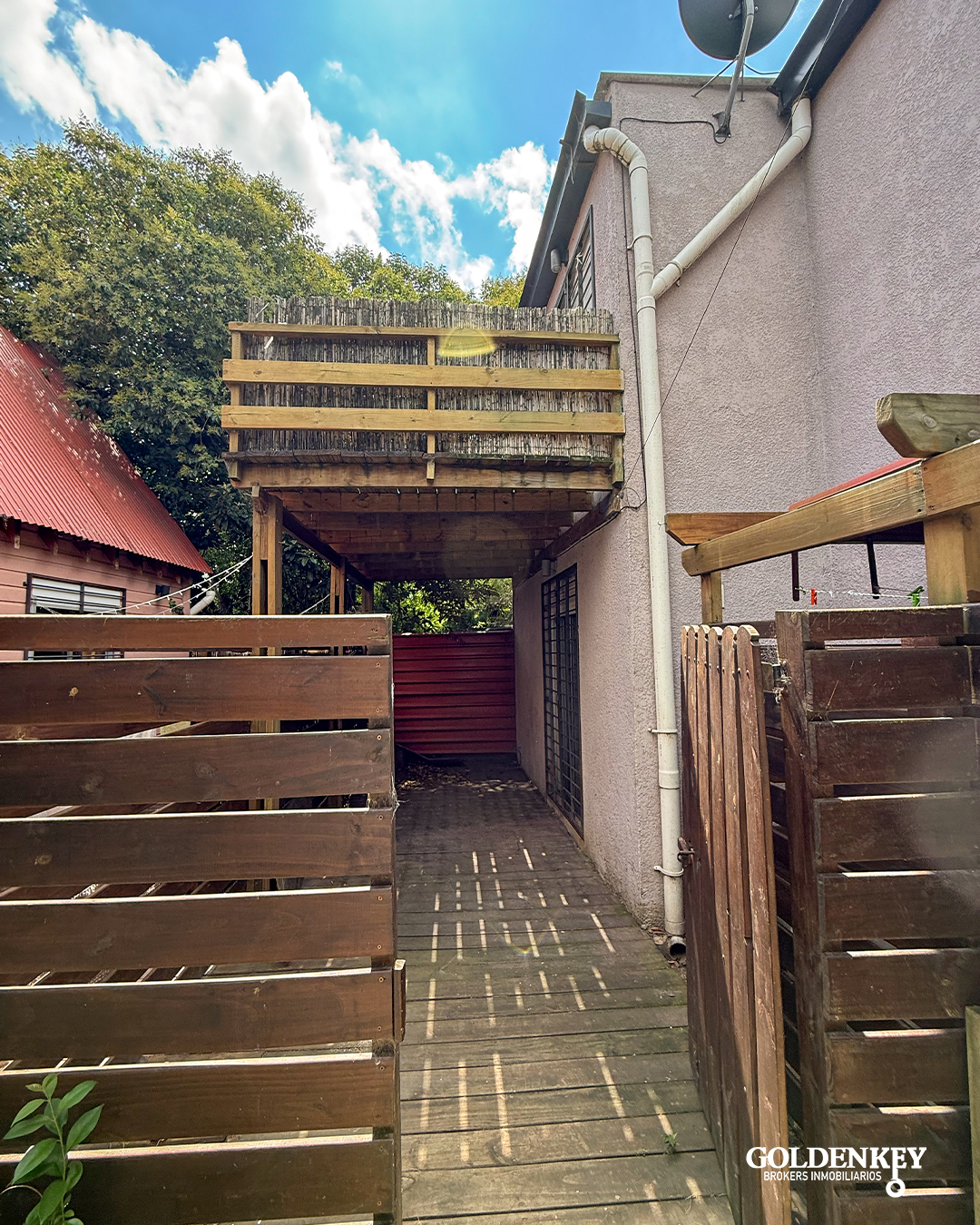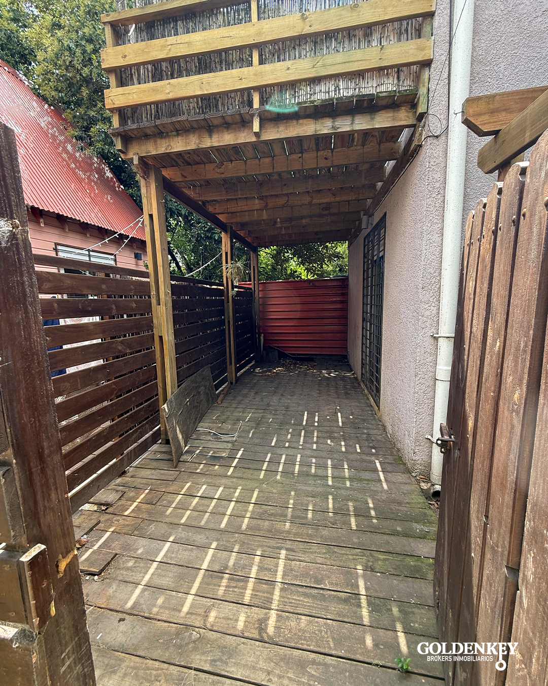 La Casa cuenta con ingreso por portón de madera a un patio independiente.
