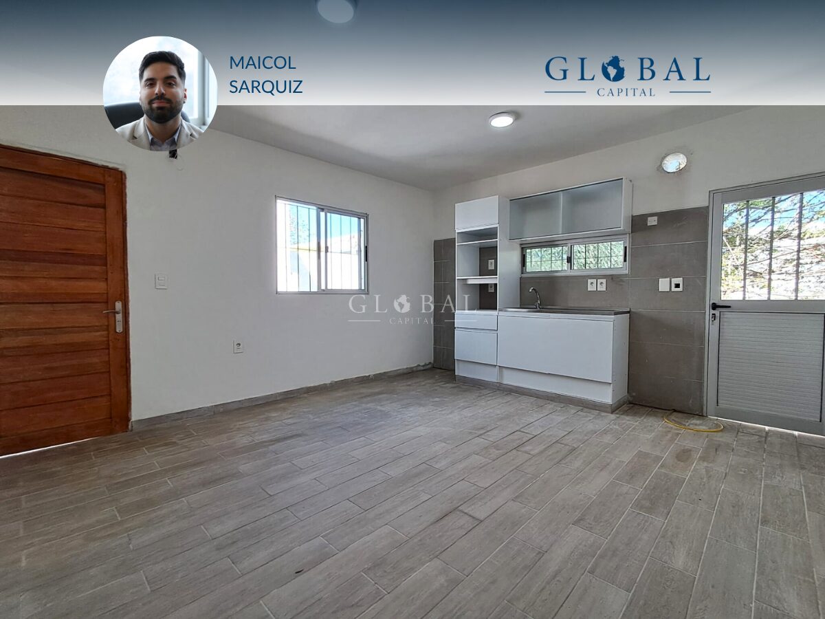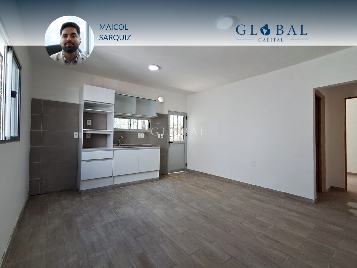 Tercer apartamento de cuatro. Al ingresar se encuentra el living con la cocina integrada. Este ambiente cuenta con buena ventilación e iluminación natural (3,99 m x 4,48 m).