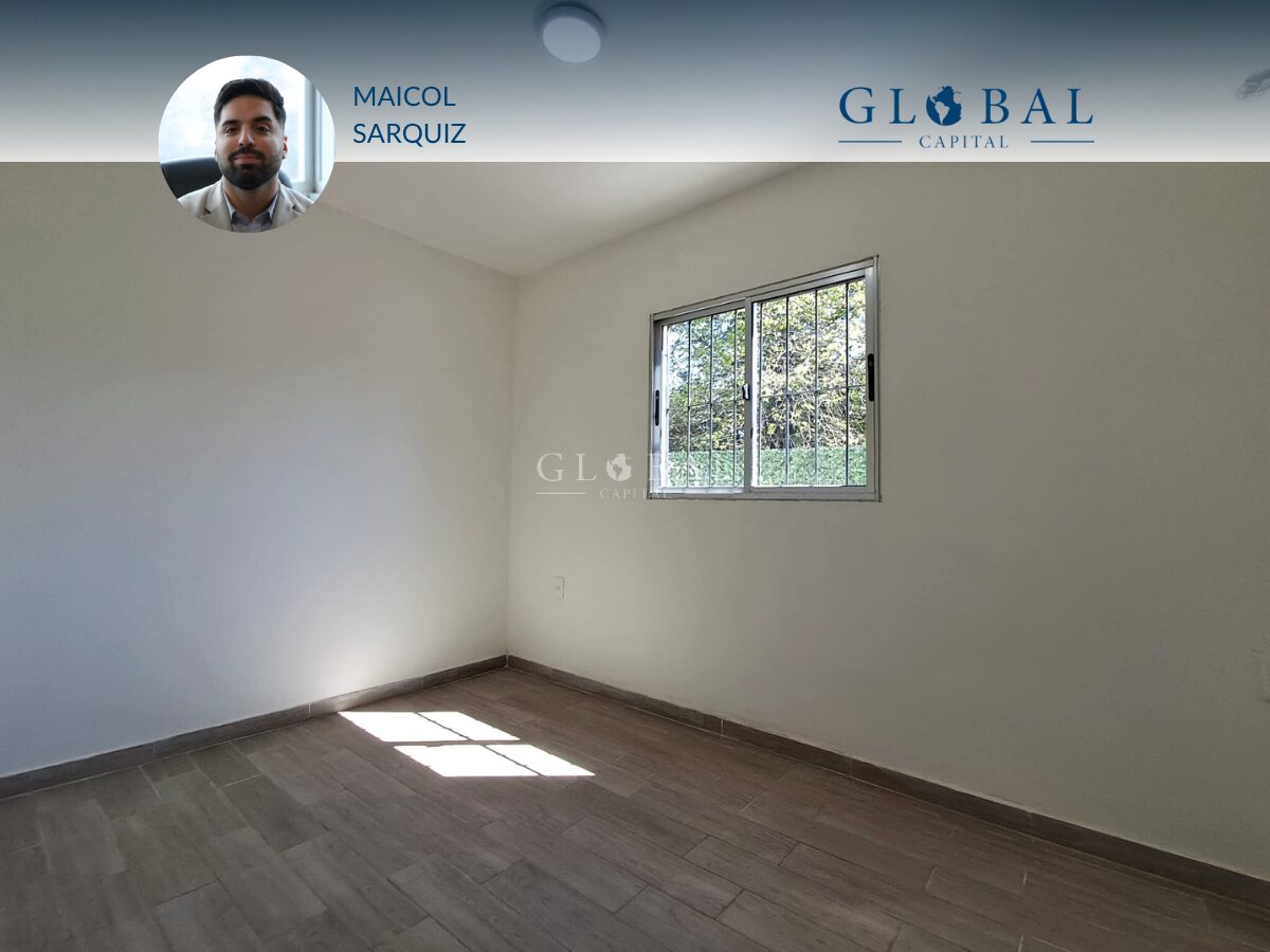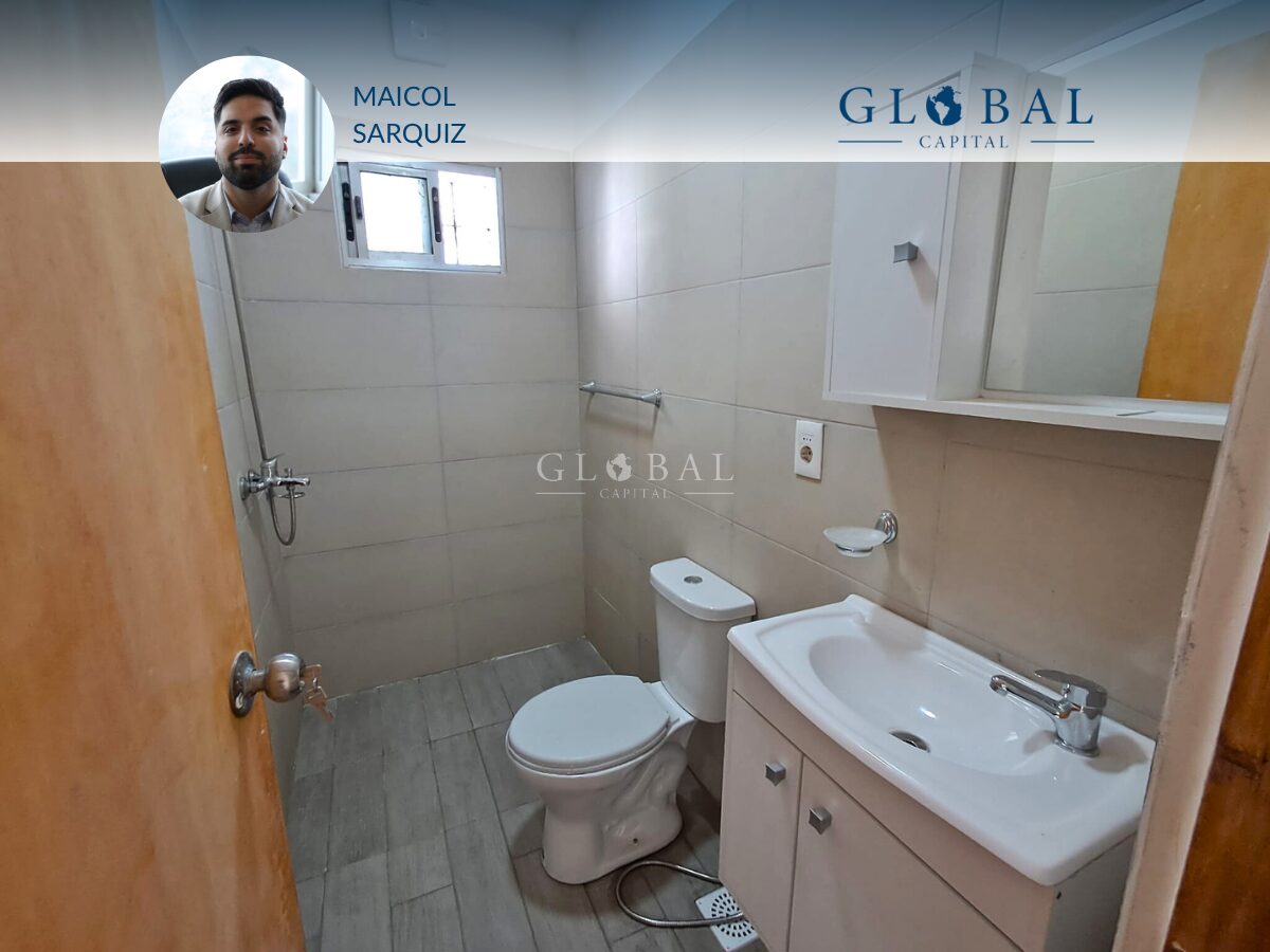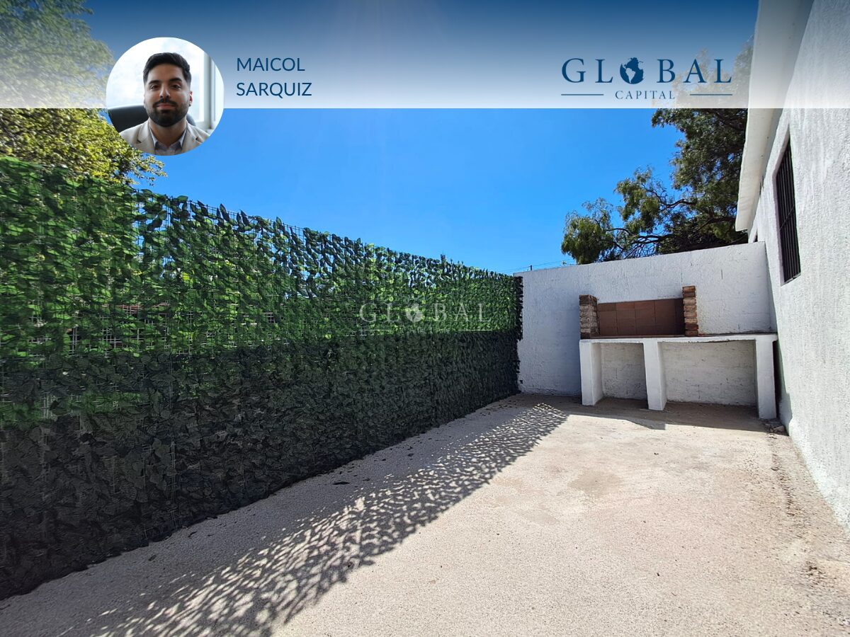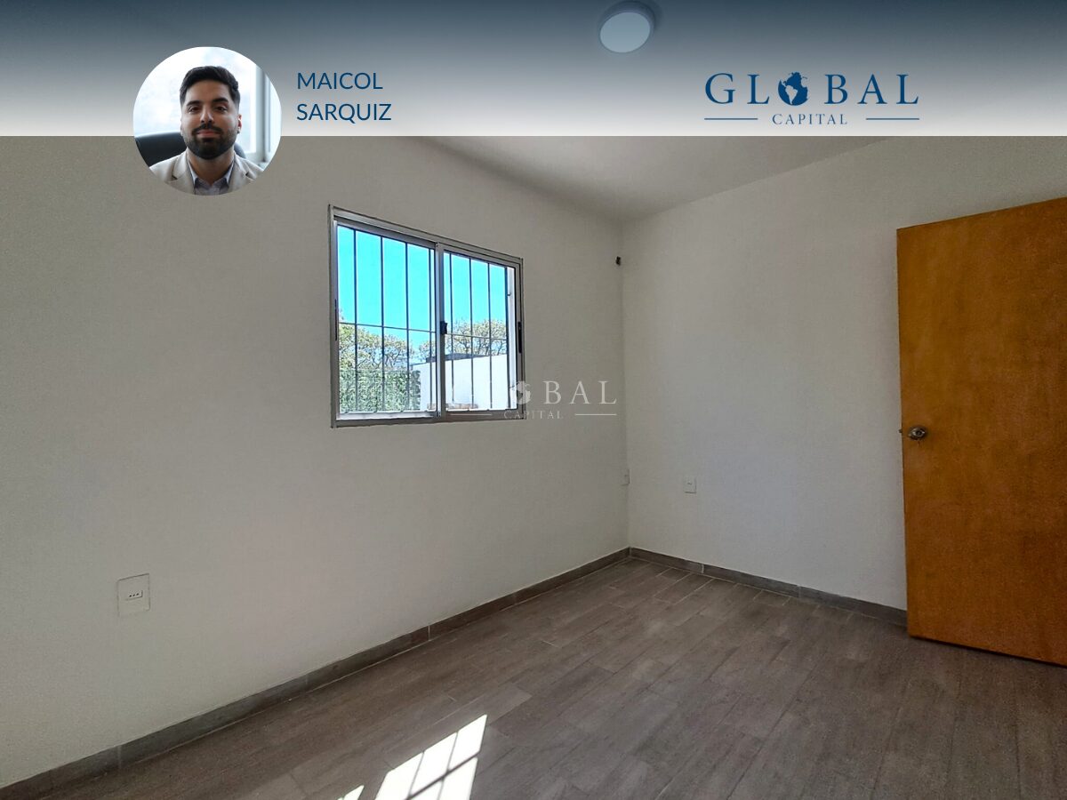El dormitorio principal mide 2,41 m x 3,44 m y cuenta con ventana hacia el patio.