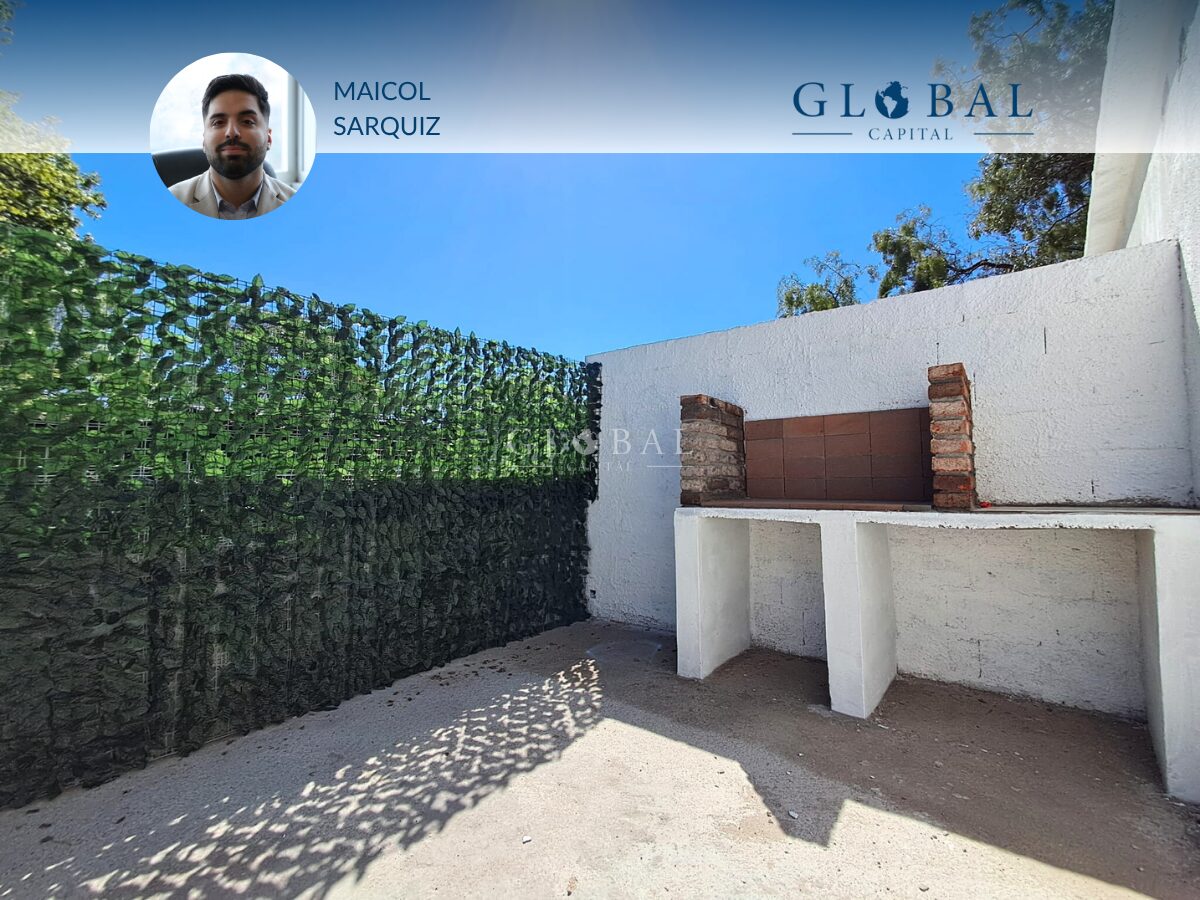 Dispone de un patio amplio que se extiende desde el inicio hasta el final del apartamento, con una superficie total cercana a los cuarenta metros cuadrados. En este espacio se encuentra un parrillero y un nicho con conexión para lavarropas y calefón.