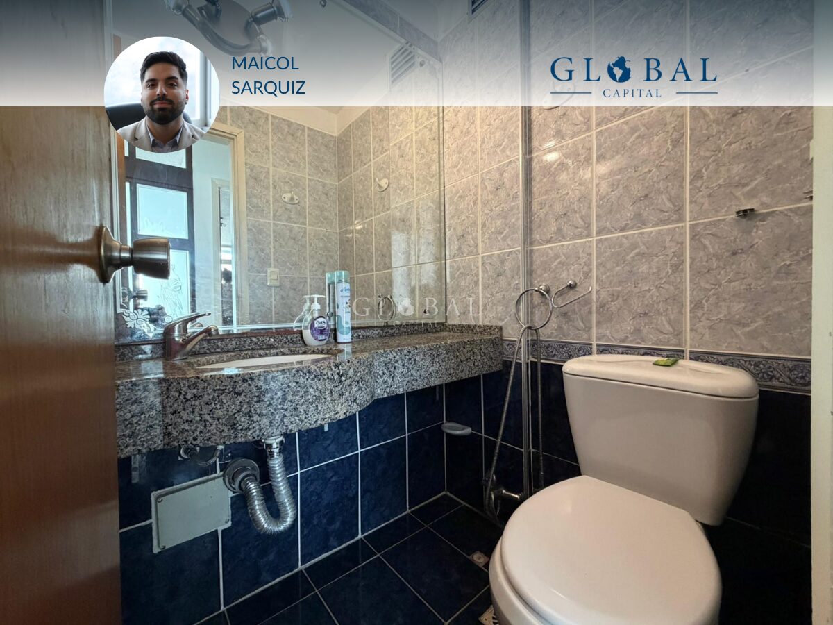 El baño es completo y se encuentra ubicado en el centro del apartamento.