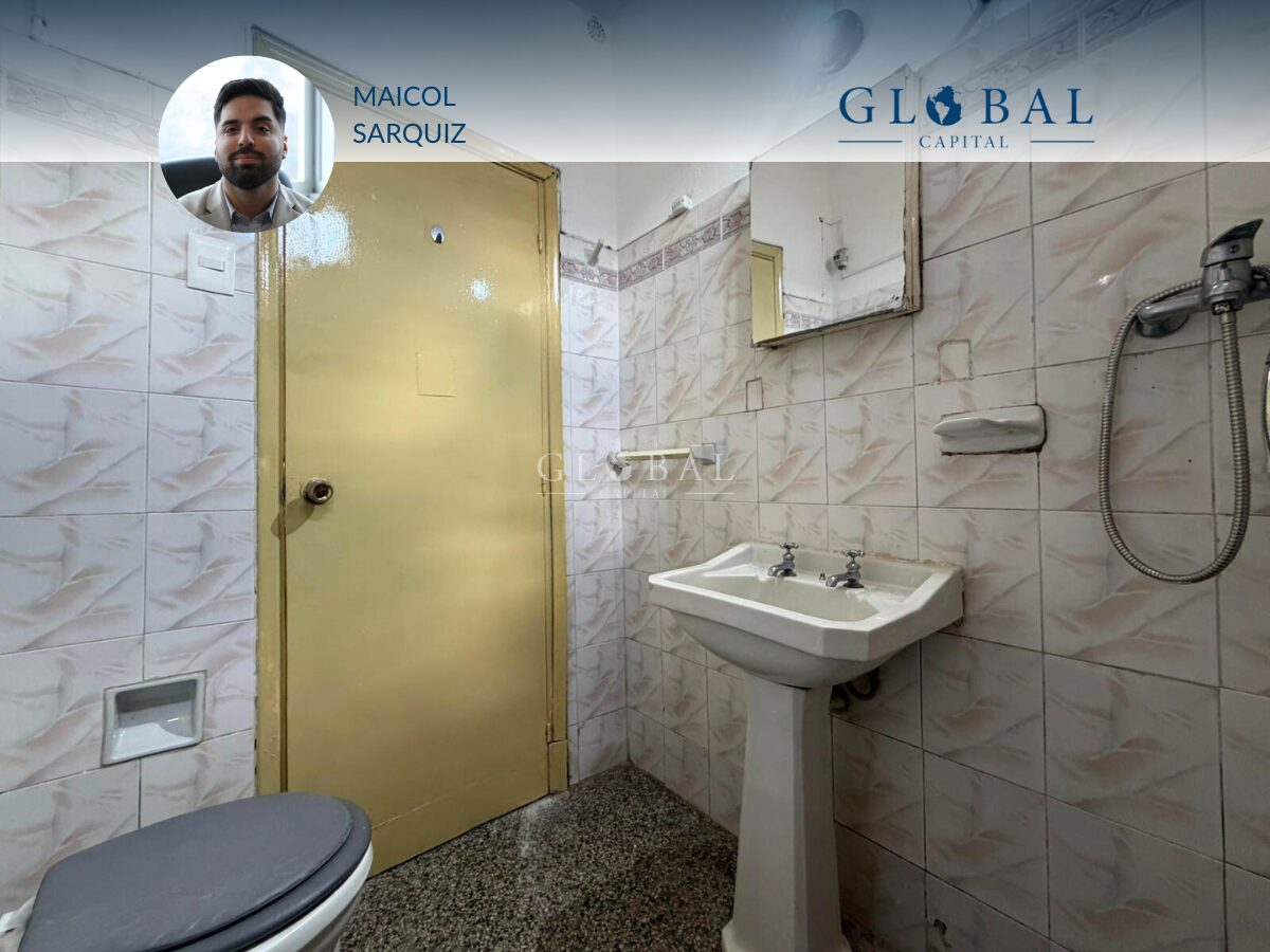 Cuenta con baño completo y dos dormitorios, uno de ellos amplio y el otro de tamaño medio.