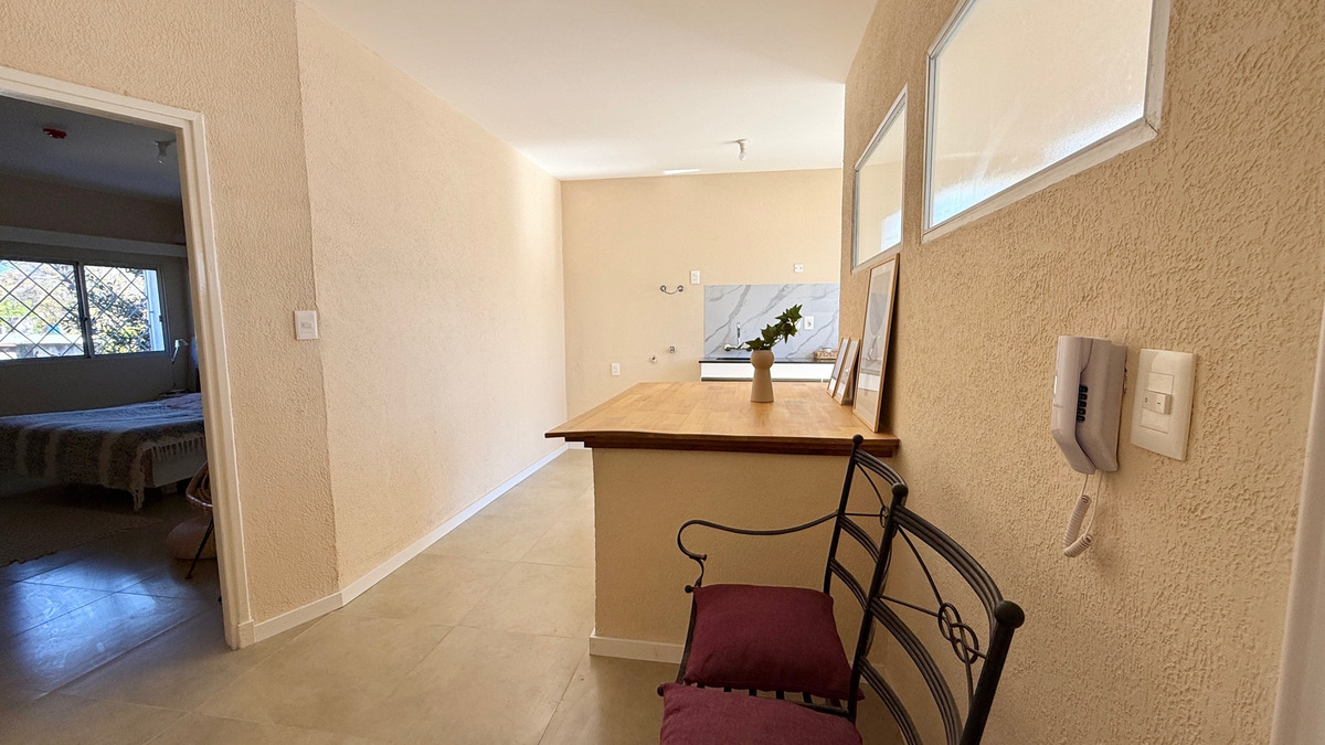 El apartamento está compuesto por un dormitorio amplio y un baño. Existe la posibilidad de alquilar cochera en el mismo predio. Los gastos comunes del edificio ascienden a $2.000. El edificio acepta garantías Anda, contaduría y aseguradoras.
