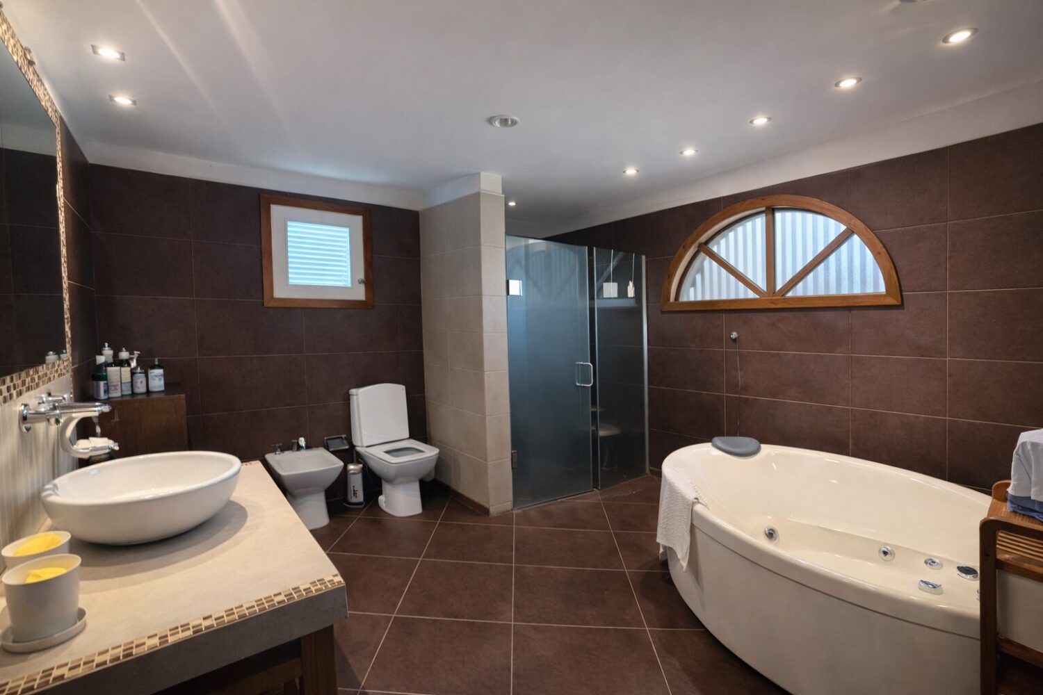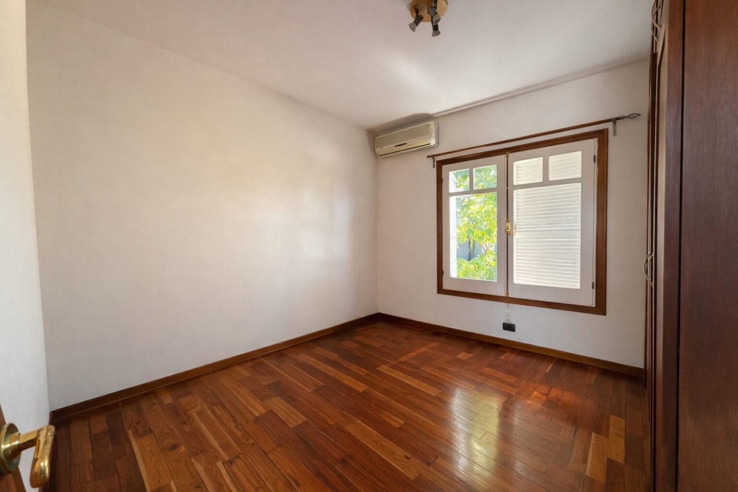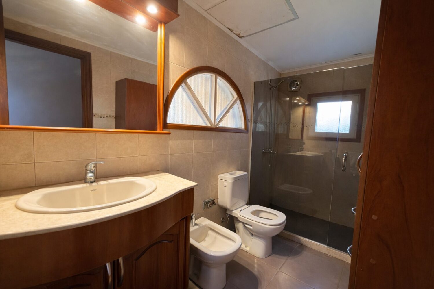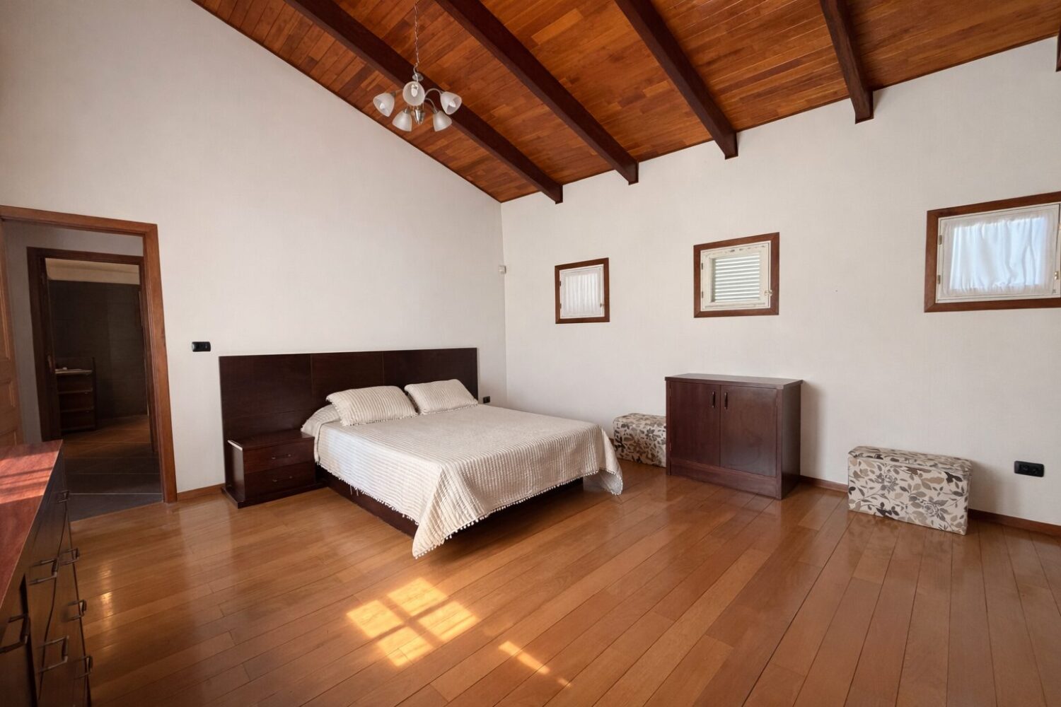 El dormitorio principal configura una suite de grandes dimensiones con baño en suite completamente equipado — jacuzzi, ducha independiente, doble lavabo — y vestidor a medida. Un nivel de confort que es difícil de encontrar en el mercado local.