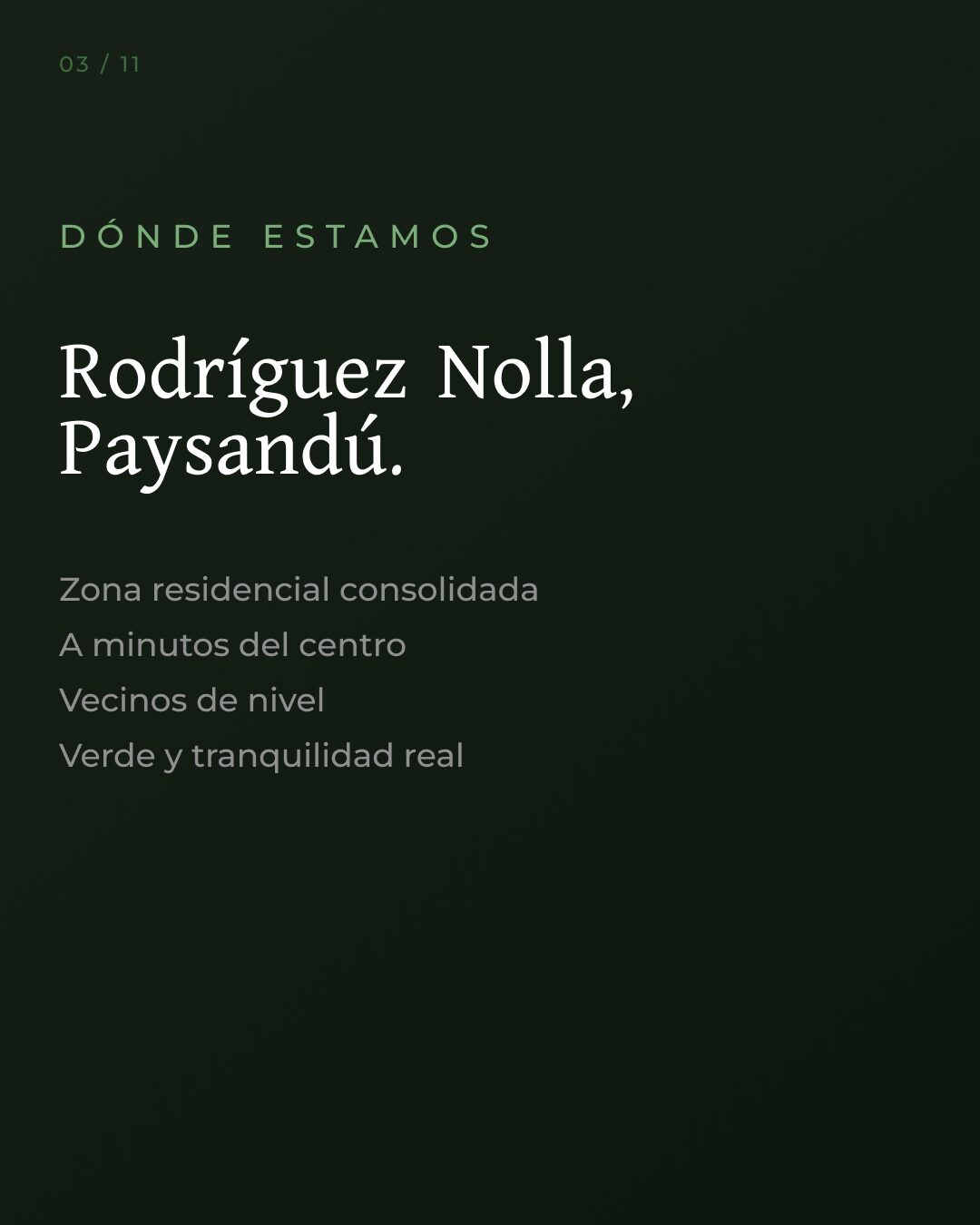 Campo Alto está ubicado sobre Rodríguez Nolla, en una de las zonas residenciales más consolidadas de Paysandú. Un entorno de casas de nivel, tranquilo y bien establecido, donde el vecindario ya habla por sí solo.