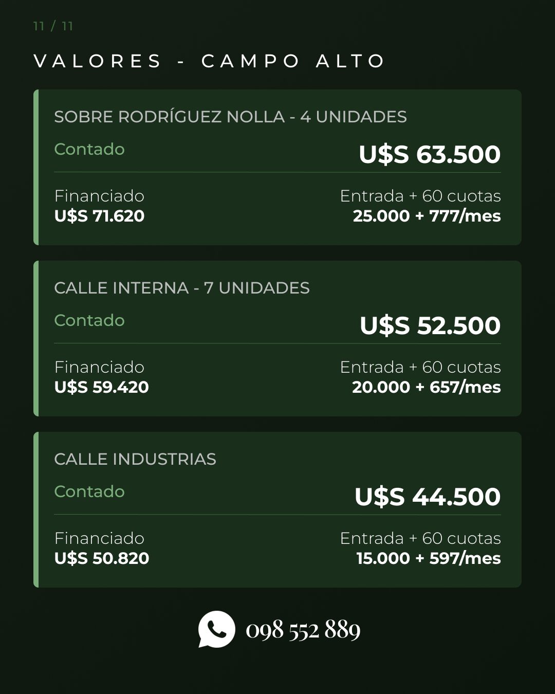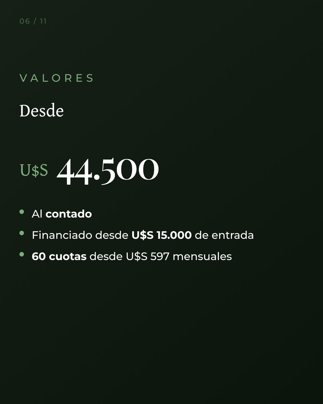 Financiación: Entrega de USD 20.000 + 60 cuotas de USD 657/mes
