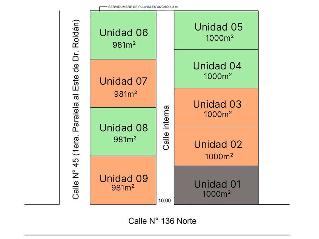 Son 5 terrenos disponibles de 1000 m², con conexión a luz y agua, y perímetro cercado.