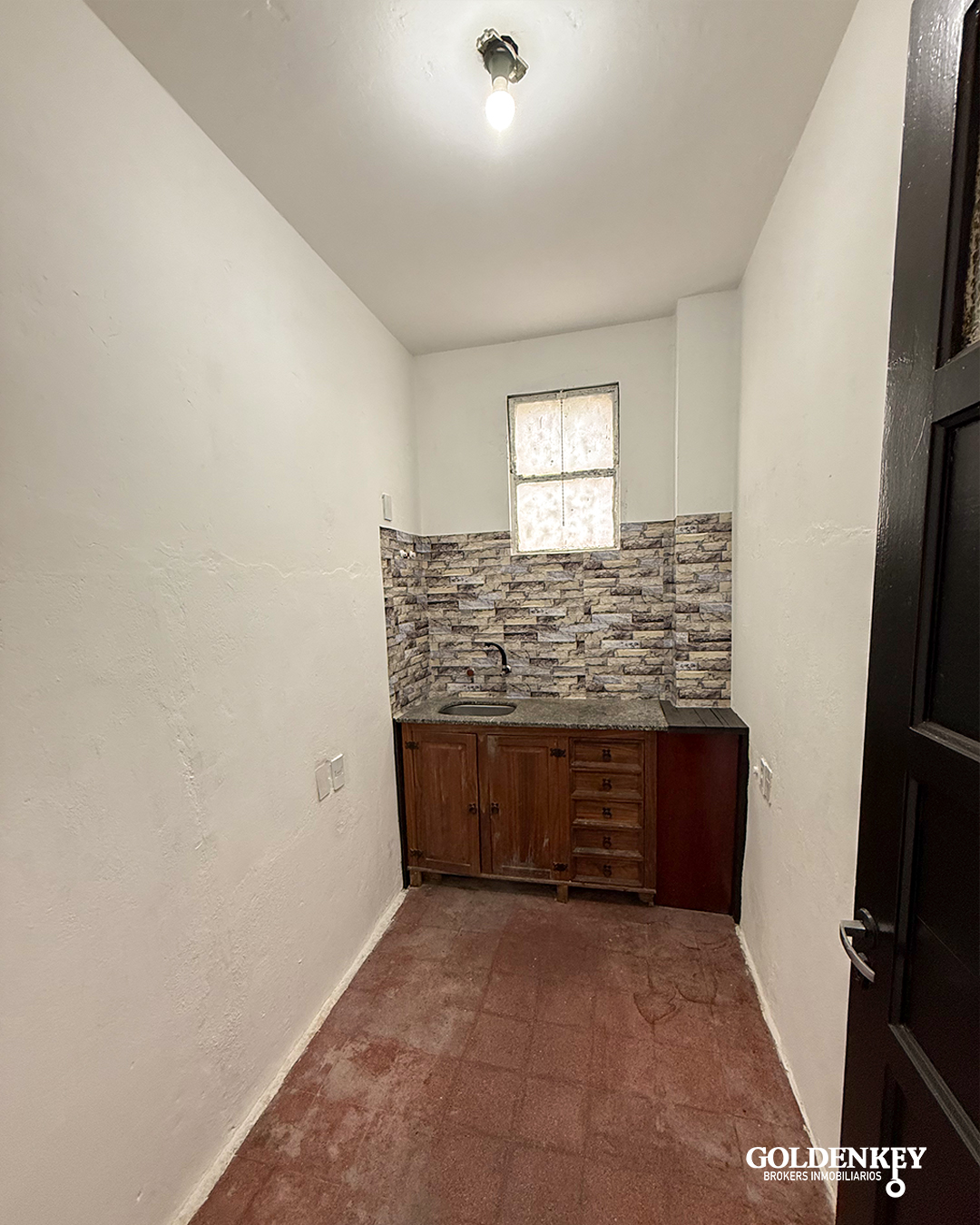 Cocina definida pequeña con mueble bajo mesada en madera.