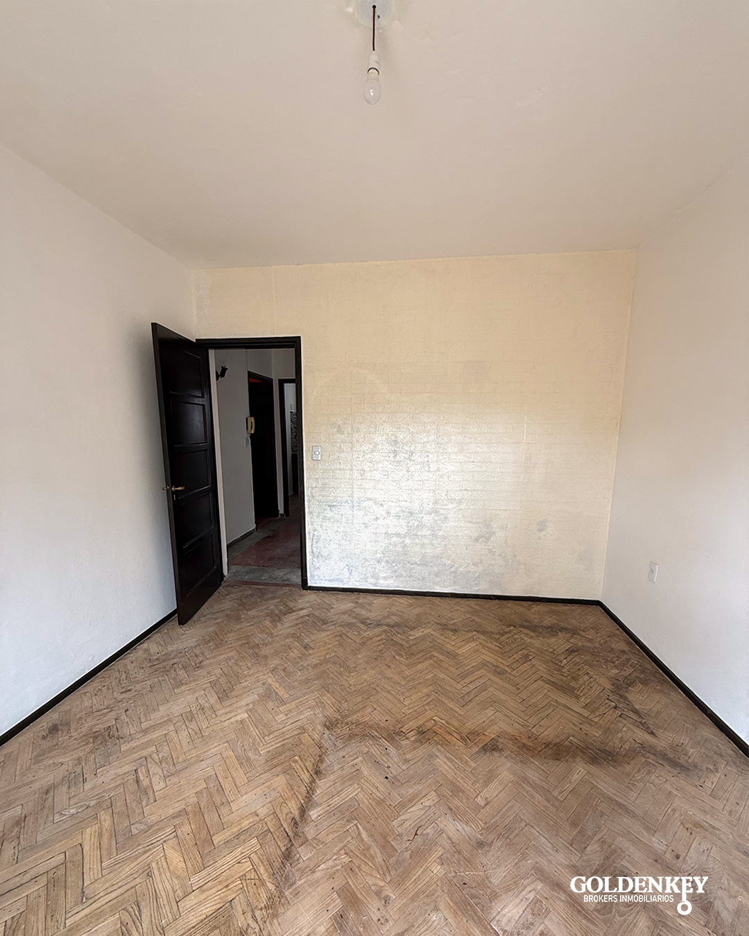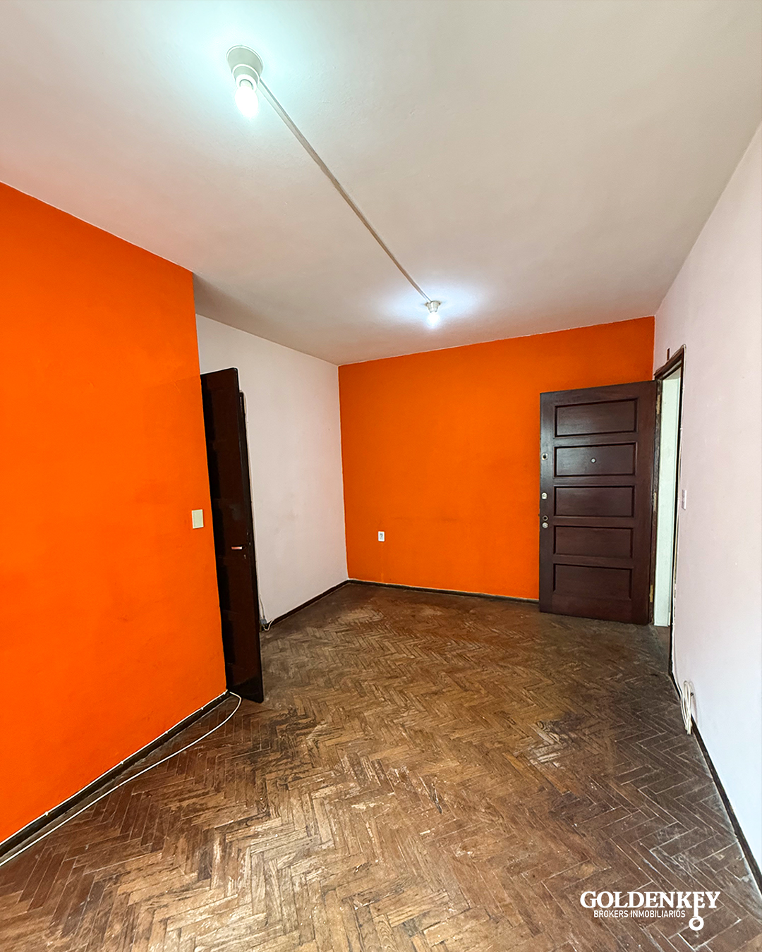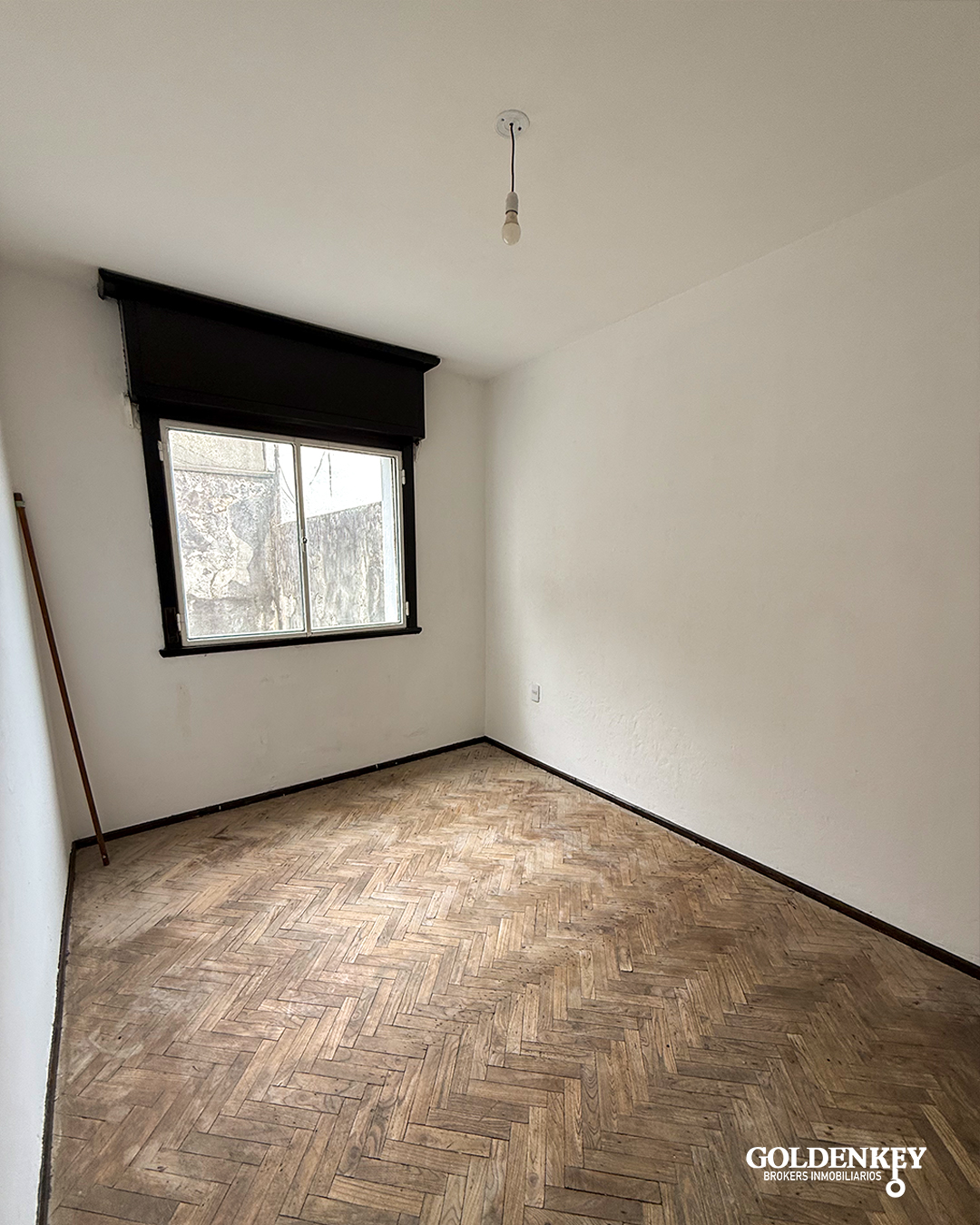 Ingreso al apartamento a living comedor de 5.3 x 3 m con ventana en aluminio con aire acondicionado con piso parquet.